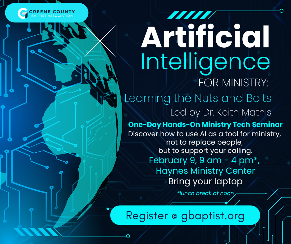 If you’ve ever wondered how AI can serve the church and want simple, Biblical, practical help, this seminar is for you.